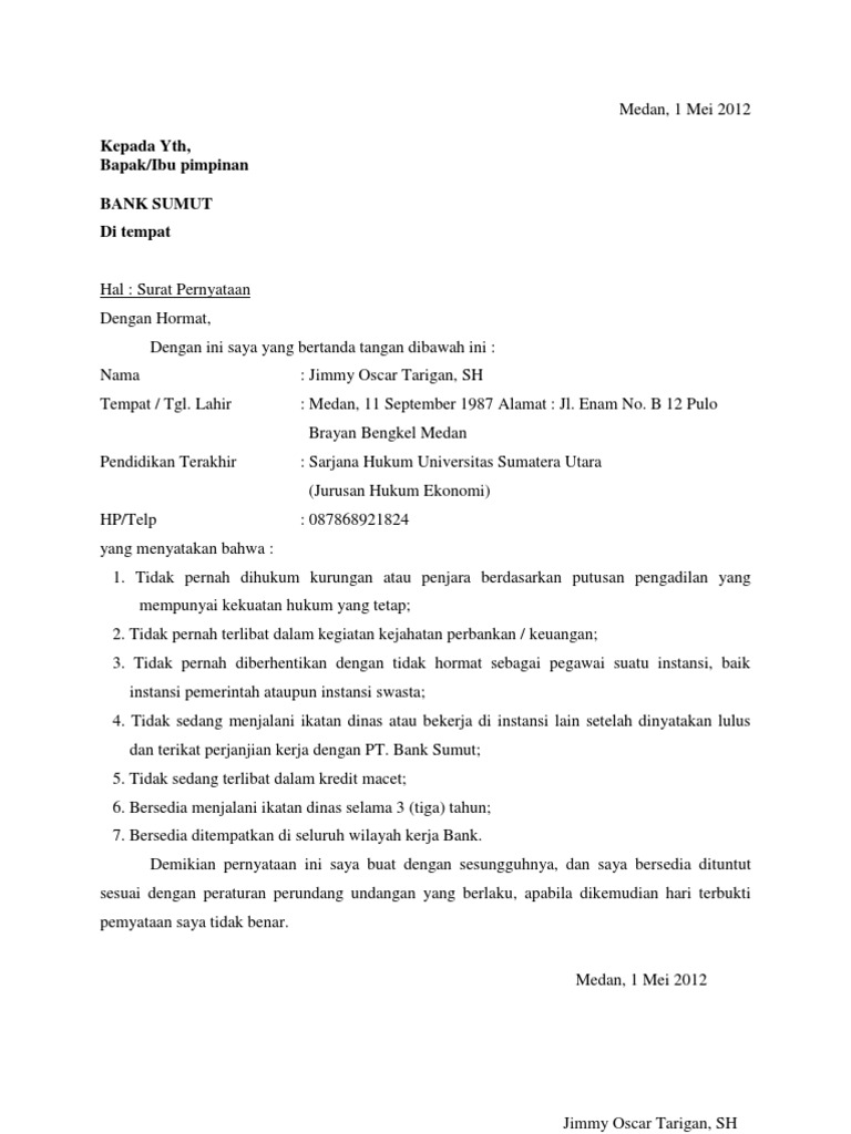 Contoh Surat Pernyataan Bersedia Ditempatkan Dimana Saja Bank Sumut - Contoh Format Surat Lamaran Dan Surat Pernyataan Untuk Daftar Cpns Kemenag 2019 Halaman All Tribunnews Com : Jumlah pernyataan berbeda tergantung institusi yang ingin kita masuki.. Dunia pekerjaan juga ada yang membutuhkan surat pernyataan orang tua untuk menyanggupi keputusan pekerjaan yang diberikan dan bersedia ditempatkan dimana saja. Documents similar to surat pernyataan bersedia ditempatkan dimana saja. Namun untuk urusan komunikasi perusahaan maupun berbagai lembaga maupun instansi pemerintah, penggunaan surat masih merupakan sesuatu hal yang wajib. Surat pernyataan merupakan salah satu surat yang umum digunakan untuk berbagai macam hal. Kali ini saya akan m.